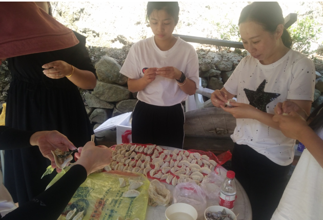 上午達到目的地后,各小組有條不紊的開始了第一項活動-自主烹飪。大家烹飪的內容也是豐富多彩,有燒烤、火鍋、包餃子、還有本地特色豬肉飯。平常不怎么露手的各位可都深藏不露,在公司里研發(fā)中心團隊可是有著燒烤達人美稱的。今年又新晉一組美食達人團隊總裁、人力組,因為他們成功打破了往年幾次燒豬肉飯失敗案例,這個逆襲非常漂亮!毫不低調的說風馳這個大家庭里有著廚師級別的成員也是高手云集的。經過一番忙碌之后,大家心滿意足的享受完一起親手烹飪的美食。