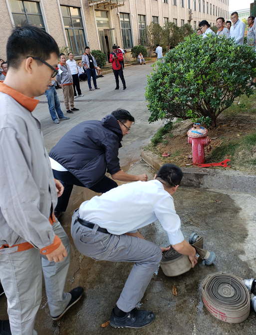 公司每年都會開展2次以上消防演練競賽活動,同時開展多次消防知識培訓,目的是讓員工提高員工安全消防意識,增強自我保護能力,學習和掌握消防安全知識及對突發(fā)火災的應變、逃生技能。今年公司于10月19日下午在廠區(qū)內開展了消防演練競賽活動,活動包含單人手提4KG干粉50m滅火、5人2盤水帶連接競賽及火災場所逃生演練,各部門員工踴躍響應號召主動參加了此次演練。