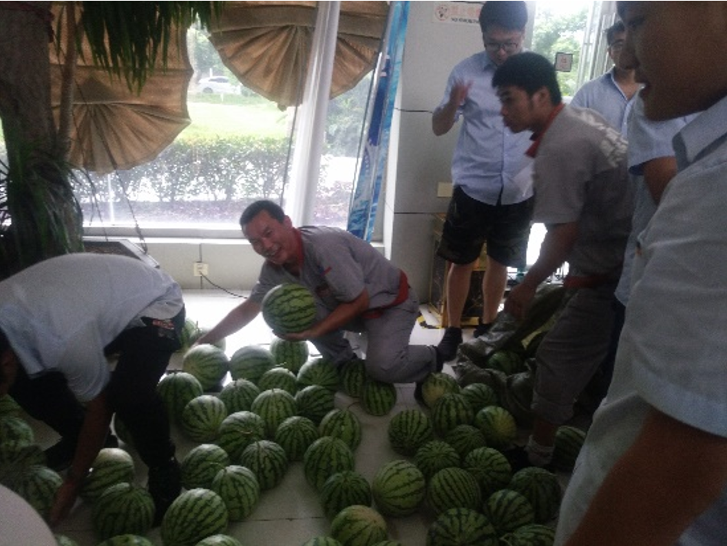 當(dāng)天,隨著鎮(zhèn)工會(huì)運(yùn)輸車的開進(jìn),企業(yè)各部門組織員工積極幫忙搬運(yùn),各個(gè)臉上洋溢著喜悅,大家一起幫忙將西瓜、飲品、防暑降溫等用品送達(dá)到員工手中,這意味著將公司的這份關(guān)懷傳遞到了員工們的心中,給炎炎夏日帶來(lái)了一縷清涼。