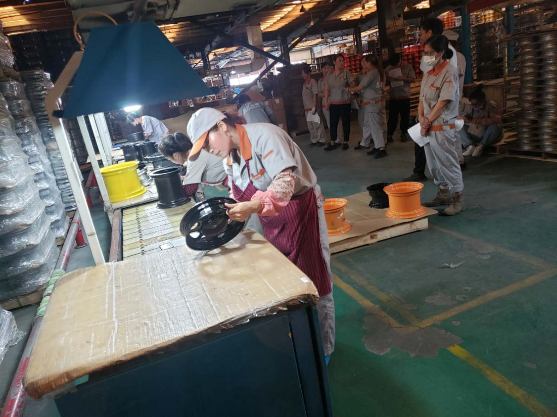 在開賽前隨機(jī)挑選了40只含有不同缺陷的鋼圈產(chǎn)品,并對每個產(chǎn)品進(jìn)行缺陷進(jìn)行記錄及編號,分為4組,每組10個產(chǎn)品,隨機(jī)安排經(jīng)過編號的參賽選手進(jìn)行外觀的檢查,需要參賽選手將缺陷名稱按照標(biāo)準(zhǔn)命名表準(zhǔn)確的填寫到表格里。經(jīng)過各選手的奮力拼博,最終四輪車間姜明容榮獲第一名,品質(zhì)部付雪平榮獲第二名,滾壓車間陳海燕榮獲第三名。